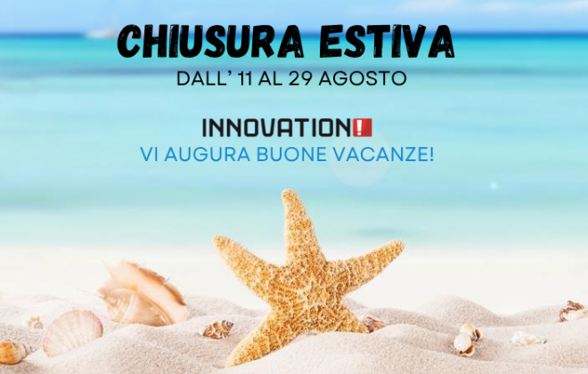 Vi informiamo che Innovation sarà chiusa per ferie dall’ 11 al 29 agosto 2025.